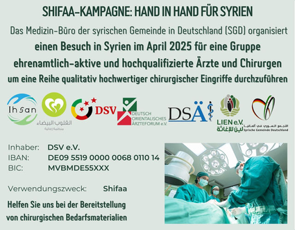 Helfen Sie mit, neue Hoffnung zu schenken: Schließen Sie sich der Shifaa-Kampagne an! Überall in Syrien warten ...